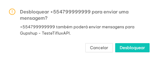 Ao iniciar manualmente um novo chat com um contato bloqueado, o usuÔrio serÔ informado e terÔ a opção de desbloquear o contato para enviar a mensagem.