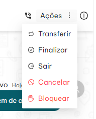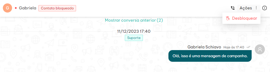 Os chats bloqueados estarĆ£o disponĆveis na tela de āEncerradosā com a sinalização de bloqueio e clicando em āAƧƵesā o contato pode ser desbloqueado.