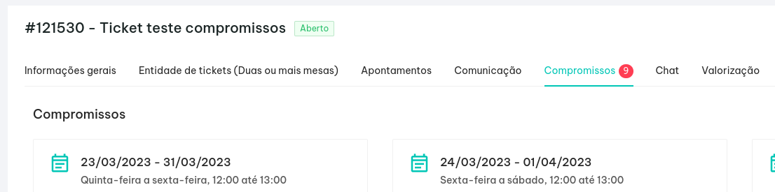 **Sinalização de compromisso no ticket**: Adicionada sinalização na aba de compromissos de tickets, o contador ira exibir a quantidade de compromissos pendentes para o ticket.